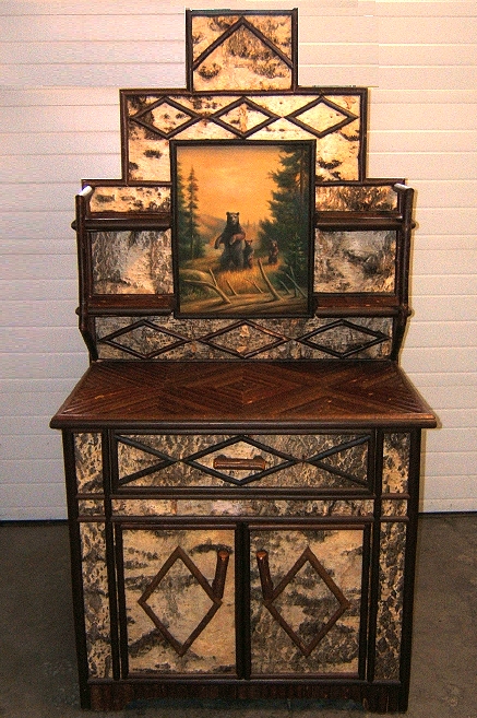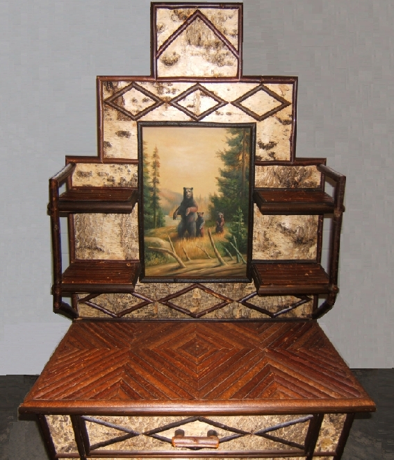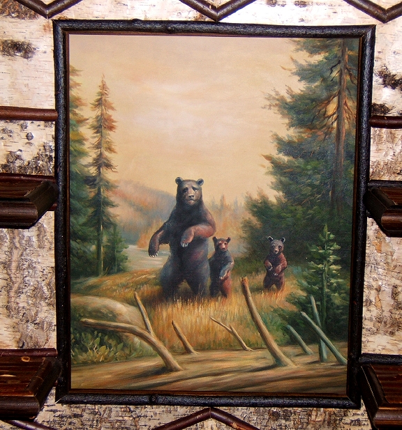 Hand painted Canvas Center Point Birch Bark with Twig Inlay & Design work |